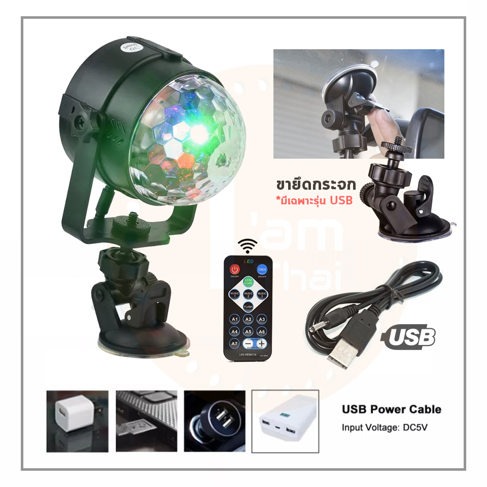 1 x LED RGB Magic Ball Effect, 1 x รีโมทคอนโทรล, 1 x ขายึดกระจก
